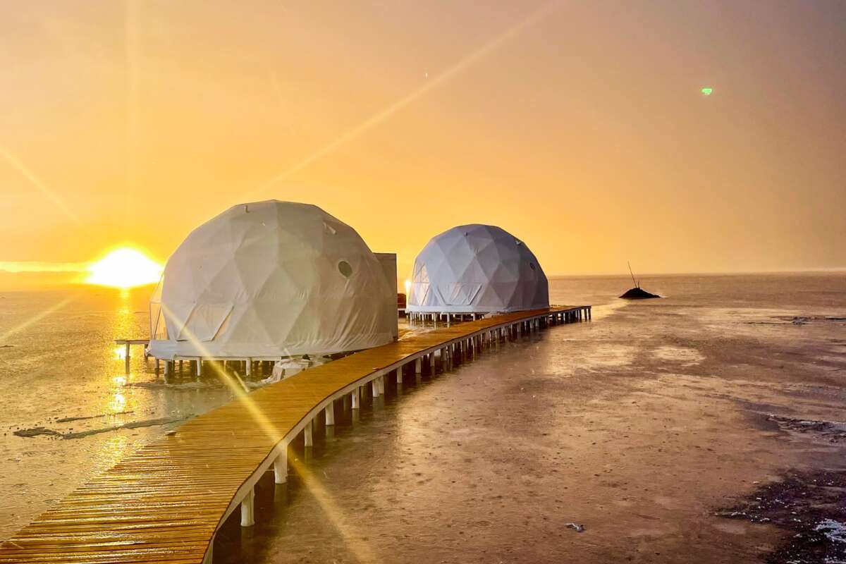 Kleines Boutique-Camp mit komfortabel ausgestatteten Kuppelzelten in den Kategorien Exclusive Suite und Premium Suite. Die Zelte verfügen über bequeme Betten, private Badezimmer, Holzofen und Panoramafenster mit Sicht auf die Salzebene. Die Premium Suiten verfügen zusätzlich über einen Jacuzzi auf der Holzveranda. Das Camp bietet ein Restaurant mit regionalen Spezialitäten und eine Lounge zum Entspannen.