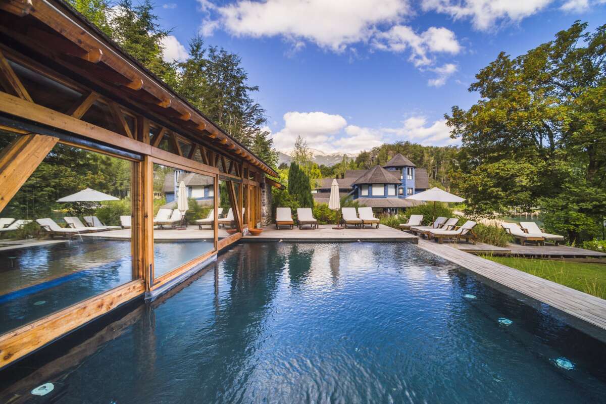 Im Haupthaus befinden sich Zimmer in verschiedenen Kategorien, alle mit Blick auf den Nahuel Huapi-See und die Berge. 2024 wurden zusätzlich beeindruckende, modernen Villen im Wald hinzugefügt. Ausserdem verfügt das Hotel über ein Gourmetrestaurant, eine gemütliche Bar, ein Spa mit Innen- und Aussenpool, ein Jacuzzi, ein Fitnessraum sowie einen direkten Zugang zur Bucht mit eigenem Bootssteg.