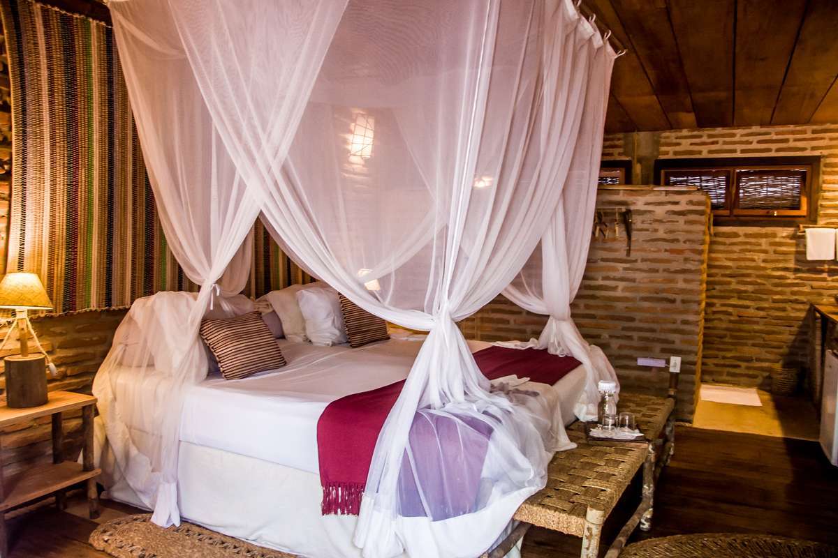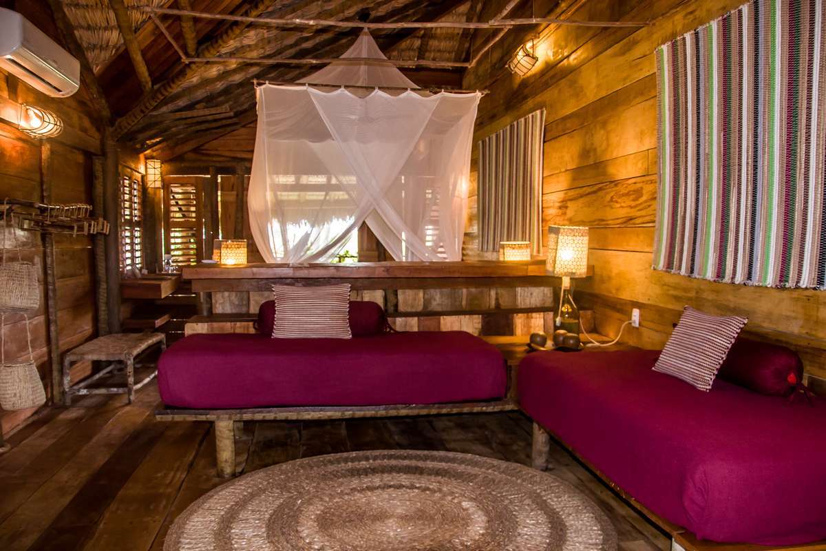 7 Zimmer im Hauptgebäude (ohne Terrasse), 8 Bungalows sowie 9 Bungalows auf Stelzen. Alle rustikal und mit typischen Materialien der Region dekoriert, mit Klimaanlage, Deckenventilator und Balkon oder Terrasse. Swimming-Pool mit Bar sowie ein Restaurant ergänzen die Infrastruktur.