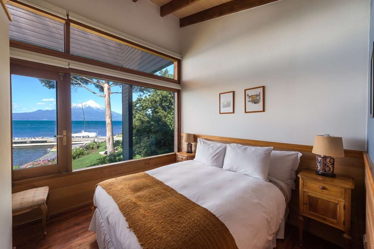 Modernes Hotel direkt am Lago Llanquihue mit Zimmern und Suiten. Alle verfügen über einen Kamin und Panoramafenster mit Blick auf den See und den Vulkan Osorno. Die Suiten bieten zusätzlich einen Wohnbereich. Die Zimmer befinden sich entweder im Haupthaus oder in der Villa am Ufer. Ein erstklassiges Restaurant mit Produkten aus dem Gemüsegarten sowie der Spa mit Indoor-Pool, Sauna, Dampfbad und Jacuzzi vervollständigen die Infrastruktur.
