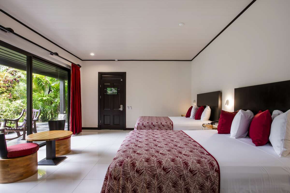 Mittelgrosses Resort mit Junior Suiten, Junior Suite Plus, Junior Suite Superior, Premium Suiten und Chato Suiten. Die Zimmer sind in Bungalows untergebracht, verfügen über Terrasse, grosse Fenster und Blick in die Natur oder auf den Vulkan. Zur Ausstattung gehören Klimaanlage, Safe, Kühlschrank, Kaffeemaschine, TV, WLAN und privates Bad. Die Premium Suiten bieten Whirlpool, die Chato Suiten einen privaten Plunge Pool und ein Aussendeck. Weitere Infrastruktur: Thermalpools, Spa, Restaurants, Sushi-Bar, Swimmingpool, Konferenzraum.