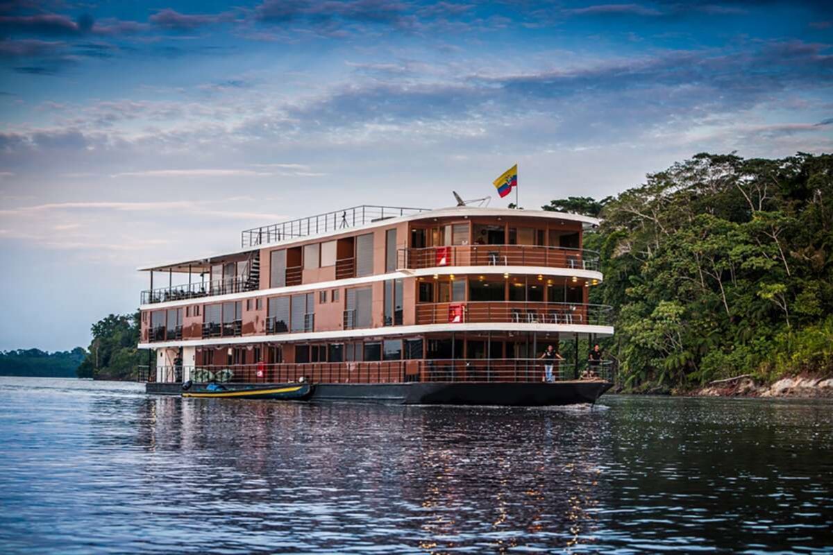 Willkommen an Bord! Das komfortable Flussfahrtenschiff Anakonda bietet nebst den Wundern des Regenwalds auch ein einzigartiges Erlebnis an Bord. Über 20 m2 gross sind die komfortablen Kabinen, mit Panorama-Fenstern und zum Teil sogar Balkonen. Während der Flussfahrt entlang des Napo-Flusses erwarten Sie spannende Ausflüge: Sie wandern durch den dichten Dschungel, spüren Kaimane auf und beobachten Vögel, Affen und Delfine. Zurück an Bord werden Sie mit exquisiten Speisen verwöhnt.