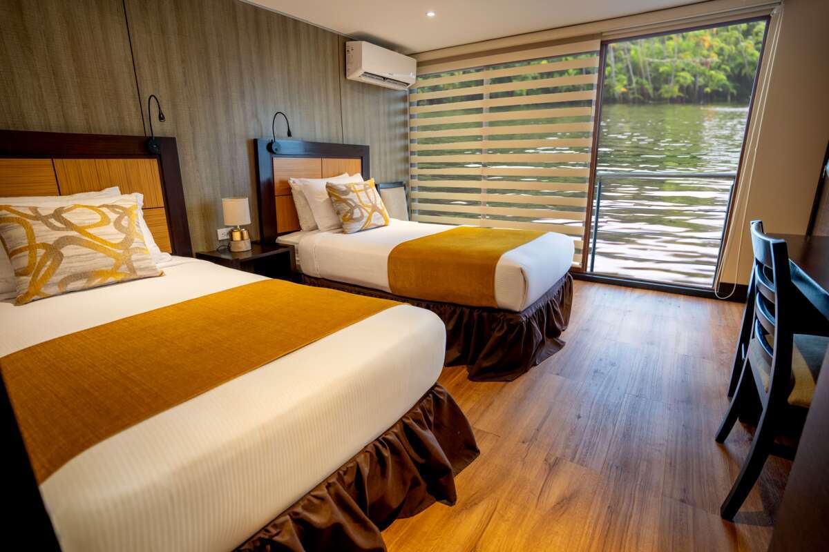 Willkommen an Bord! Das komfortable Flussfahrtenschiff Anakonda bietet nebst den Wundern des Regenwalds auch ein einzigartiges Erlebnis an Bord. Über 20 m² gross sind die komfortablen Kabinen, mit Panorama-Fenstern und zum Teil sogar Balkonen. Während der Flussfahrt entlang des Napo-Flusses erwarten Sie spannende Ausflüge: Sie wandern durch den dichten Dschungel, spüren Kaimane auf und beobachten Vögel, Affen und Delfine. Zurück an Bord werden Sie mit exquisiten Speisen verwöhnt.