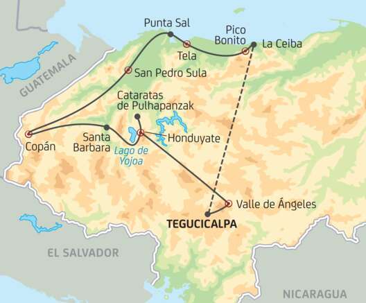 Ein Tag steht Ihnen für Wanderungen im Regenwald des Pico Bonito-Nationalparks zur Verfügung, einem der artenreichsten und ursprünglichsten Schutzgebiete Zentralamerikas. Über 420 Vogelarten, tropische Amphibien und exotische Säugetiere sind hier zuhause. Am nächsten Tag reisen Sie entlang der Karibikküste nach Tela, wo Sie den Rest des Tages nach Ihren Wünschen gestalten können.