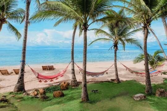 Luxuriöse Eco-Lodge mit Bungalows mit je nach Kategorie Wald- oder Meersicht, teils mit privatem Plunge-Pool, Deckenventilatoren und grosser, überdachter Terrasse. Sie sind mit zwei offenen Seiten versehen und komplett mit Moskito-Netzen eingekleidet. Über eine Hängebrücke gelangt man zum Hauptgebäude, wo sich Restaurant, Bar sowie Bibliothek und Lounge befinden. Swimmingpool mit gemütlichem Liegedeck, am Strand locken Schatten spendende Ranchos mit Hängematten und Liegestühlen.