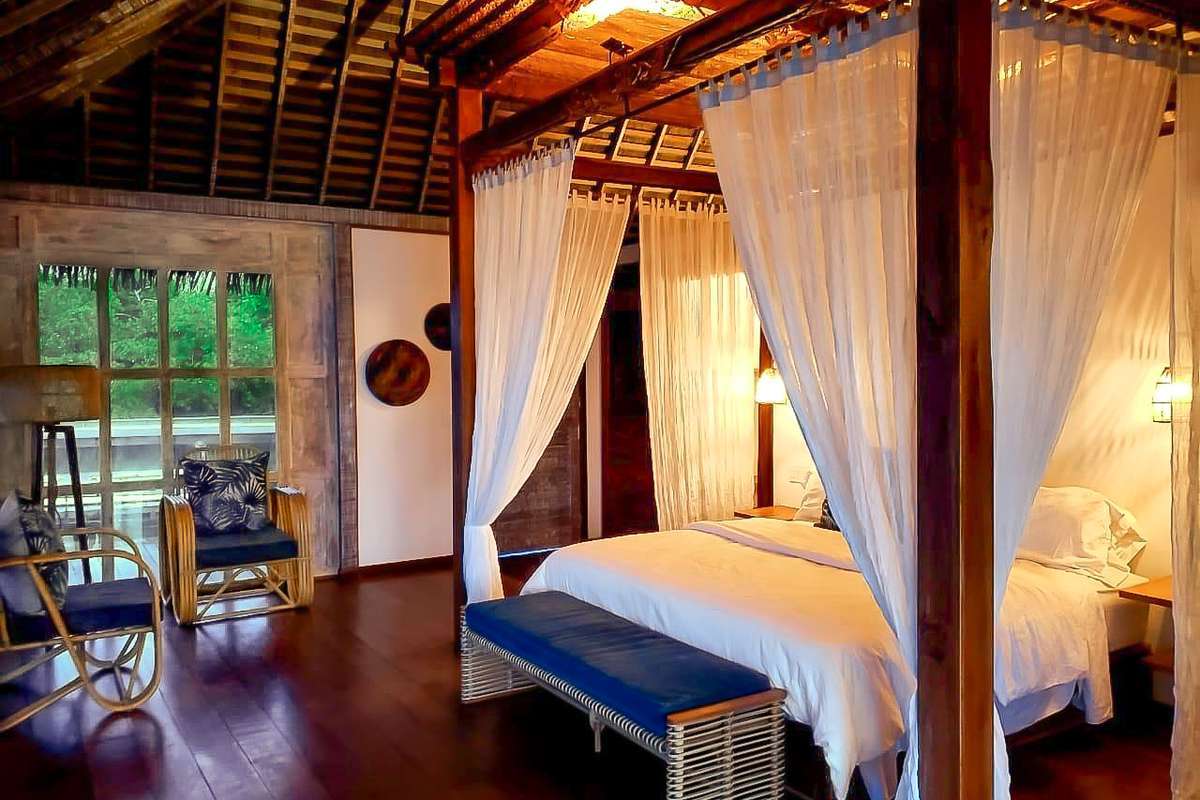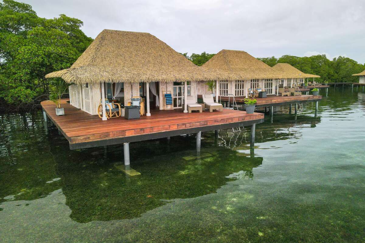 Die luxuriösen Überwasser-Villen und zwei Baumhäuser sind alle in elegantem, balinesischem Stil erbaut. Der Hauptwohnbereich der Villen verfügt über ein Guckkastenfenster mit blauem Licht, so dass die Gäste auch nachts das Treiben im Meer beobachten können. Alle Gäste der Villen können direkt von der Terrasse aus über eine Treppe in die Bucht springen und ein Bad im karibischen Meer geniessen.
