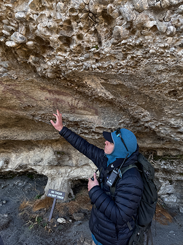 Eine Wanderung durch den Osten des Nationalparks führt vorbei an endlosen Graslandschaften, smaragdgrünen Seen und über 4000 Jahre alten Felsmalereien des Aónikenk-Volks. Erfahrene Guides erzählen inspirierende Geschichten von Gletschern, Guanakos und gelebter Leidenschaft – stets mit einem Funkeln in den Augen.