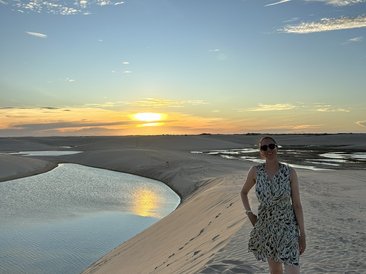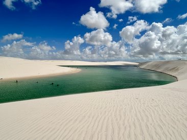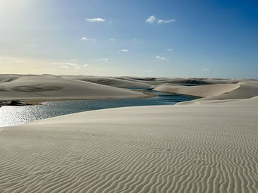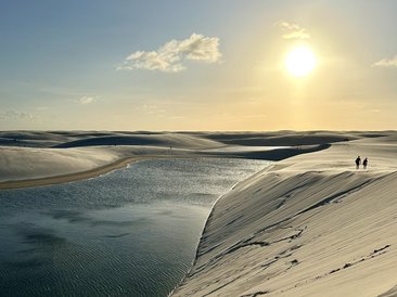 Eine rund vierstündige Fahrt durch grüne Ebenen und kleine Dörfer bringt mich nach Barreirhinas, dem Tor zum Nationalpark Lençois Maranhenses. Was mich hier erwartet ist schlicht atemberaubend: Mit einem 4x4-Fahrzeug geht es direkt hinein in eine surreale Landschaft, geschaffen von Wind und Regen. Weisse Sanddünen, soweit das Auge reicht und dazwischen erstrahlen die vom Regenwasser gefüllten Lagunen in türkis und blau. Und das Beste: Man kann in den Lagunen baden! Am Abend beobachte ich von einer Düne aus, wie die Sonne langsam hinter dieser Wunderwelt aus Sand und Wasser verschwindet. Ein unvergesslicher Moment!